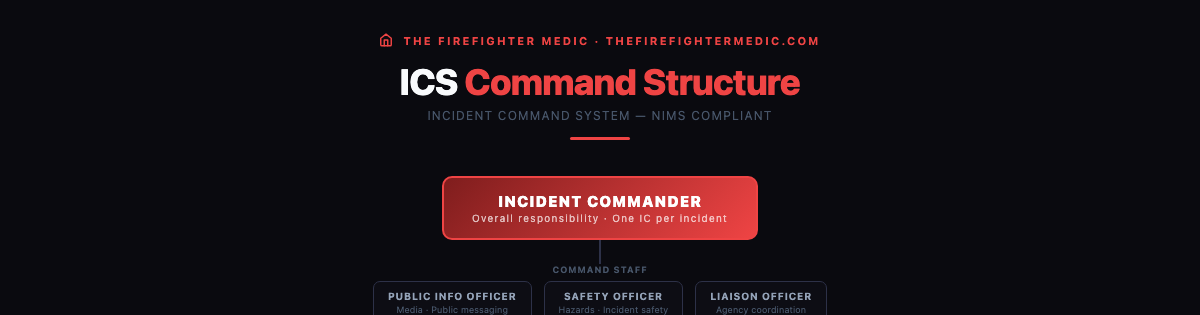 Covers strategic/tactical fireground operations, command theory, and senior officer responsibilities. Accordion-organized with embedded visual reference cards: